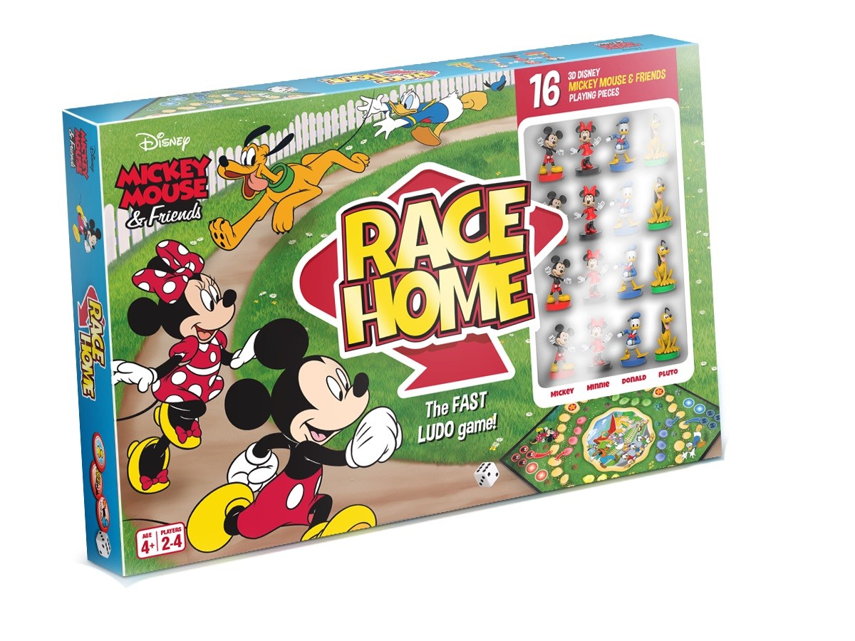 O chłopie! Mickey, Minnie, Donald i Pluto ścigają się, wracając do domu. Wybierz swoją ulubioną postać i ŚCIGAJ się po planszy, używając kości i monet przyspieszenia. Pierwszy gracz, który wygra wszystkie cztery postacie HOME wygrywa!
