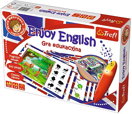 Enjoy English to gra, dzięki której Mali Odkrywcy poznają podstawowe słownictwo angielskie. Plansze tematyczne umożliwiają przyswojenie i utrwalenie najważniejszych słów. Gry i zabawy językowe zawarte w zestawie pomogą dzieciom stawiać pierwsze kroki w nauce języka obcego.