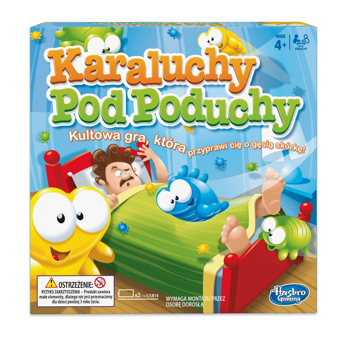 Czy coś tu pełza? Czy coś tu gryzie? Czy w moim łóżku coś się kryje? Karaluchy pod Poduchy to zwariowana gra, w której głównym zadaniem graczy jest wyłapanie szkodliwych robaczków. Wysyp gumowe robaki na tekturowe łóżko i naciśnij przycisk. Łóżko zacznie wibrować, a gumowe insekty skakać będą z boku na bok! Zadaniem graczy jest wyłapanie wszystkich robaczków w danym kolorze, używając dołączonych do gry pęset. Gracz, który jako pierwszy wyłapie wszystkie robaczki wygrywa.