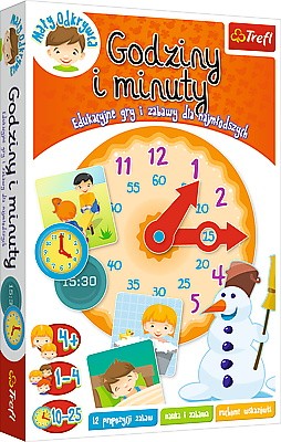 Godziny i minuty to gra, która pozwala dzieciom poznać działanie zegara oraz uczy przyporządkowywać różne czynności odpowiednim porom dnia i dniom tygodnia. W grze wykorzystano ilustracje nawiązujące do codziennych aktywności dzieci, aby łatwiej im było przyswoić koncepcję czasu i jego upływu. Dzięki dołączonym rekwizytom dzieci mogą uczyć się planowania i określania kolejności zdarzeń. W ciekawy i angażujący sposób gra ćwiczy podstawowe umiejętności klasyfikowania, układania ciągów logicznych i wyciągania wniosków. Dziecko rozwija słownictwo i ćwiczy koncentrację uwagi.