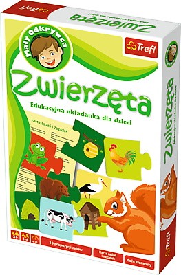 Zwierzęta to dydaktyczna układanka dla przedszkolaków, która w przyjazny sposób wprowadza dziecko w świat zwierząt. Podczas wesołej zabawy, polegającej na łączeniu puzzlowych elementów, dziecko poznaje zwierzęta, ich domy, a także smakołyki.