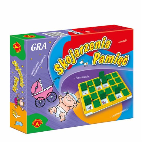 W tej grze wygrywa ten, kto będzie właściwie kojarzył odsłaniane obrazki (np. dziecko i wózek) pamiętając miejsce ich położenia.