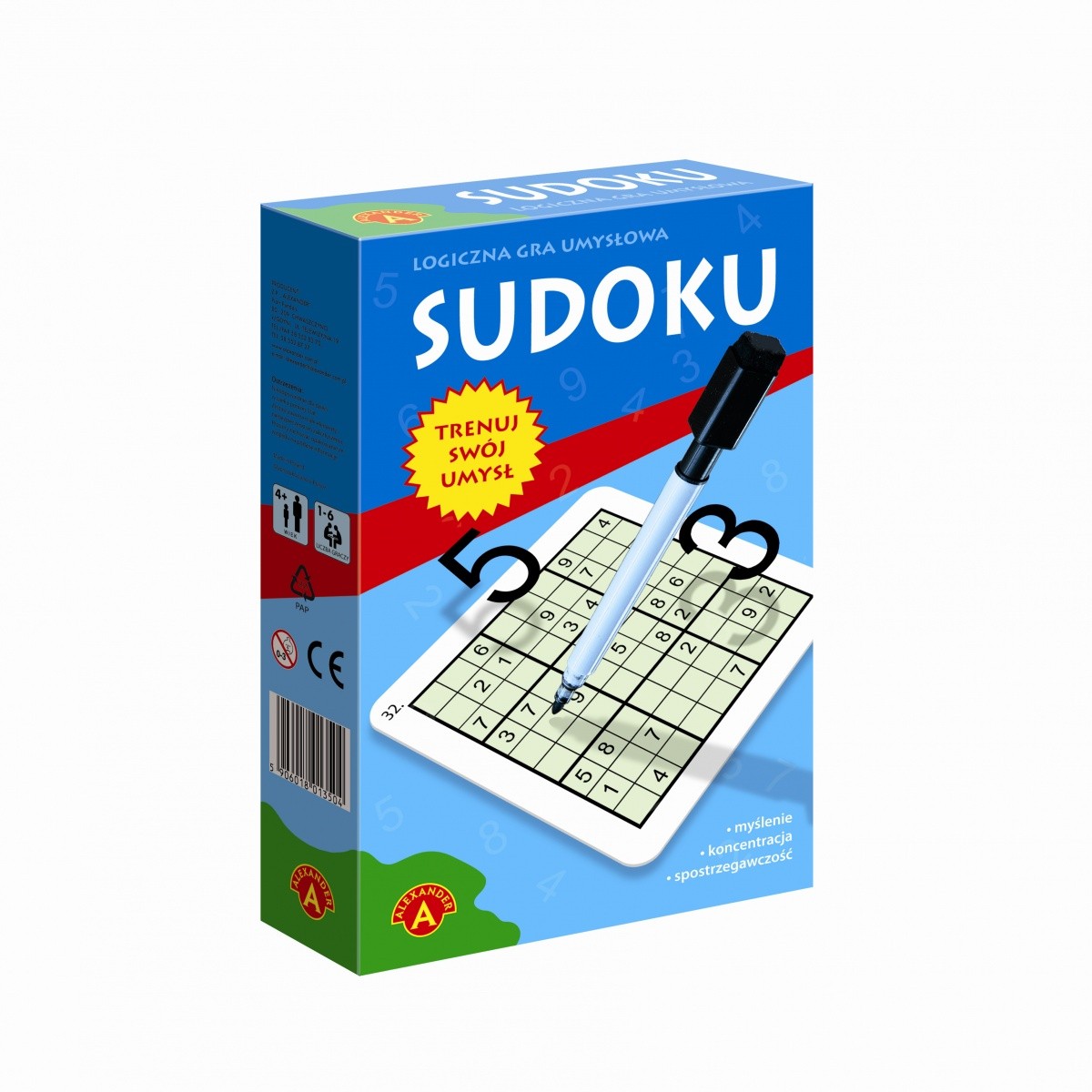 Sudoku, to doskonałe ćwiczenie spostrzegawczości, koncentracji i myślenia. Zestaw składa się z 35 dwustronnych plansz, na których znajduje się 70 tablic Sudoku do rozwiązania. Plansze, na których wpisuje się cyfry pokryte są folią, a do pisania służy znajdujący się w pudełku zmazywalny pisak. Dzięki temu każdy błąd można łatwo zmazać i poprawić, a wszystkie tablice można używać wielokrotnie.