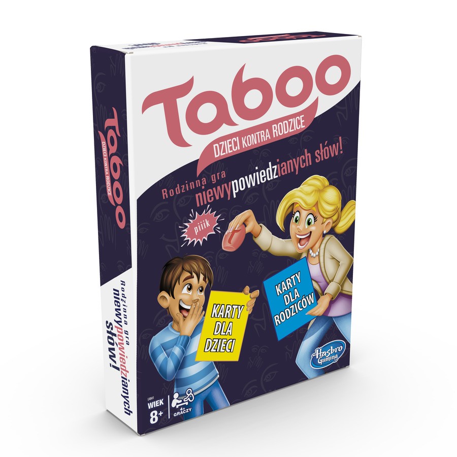 Poznajcie kultową grę Taboo w wersji dla całej rodziny! W grze znajdziecie ponad 1000 słów do odgadnięcia, umieszczonych na dwóch taliach kart: 130 dla dorosłych oraz 130 dla najmłodszych. Talia dziecięca zawiera jeden wyraz do odgadnięcia oraz tylko 2 niewypowiadane słowa. Gracze ścigają się między sobą w odgadnięciu zakazanych haseł. Kto pierwszy ten lepszy!
