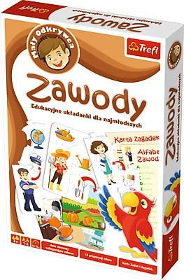 Zawody to układanka edukacyjna, dzięki której dzieci zapoznają się z pracą ludzi na różnych stanowiskach oraz ich narzędziami pracy. Bawiąc się dzieci wzbogacają słownictwo związane z zawodami, ćwiczą umiejętności wypowiadania się na określony temat, rozbudzają ciekawość poznawczą, a także rozwijają pamięć wzrokową i sprawność manualną.