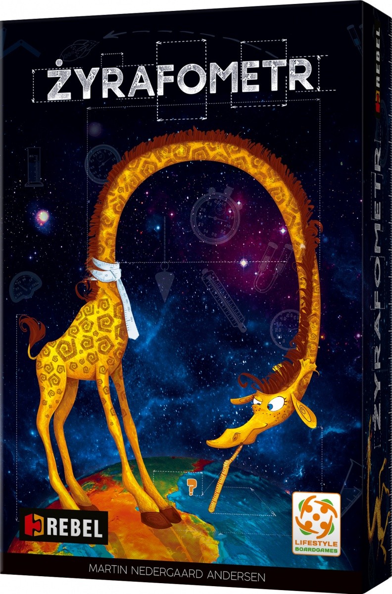 Żyrafometr to gra imprezowa i edukacyjna, w której od dwóch do ośmiu graczy ma okazję stanąć przez zbiorem najróżniejszych faktów dotyczących otaczającego nas świata i wspólnymi siłami (lub grając przeciwko sobie) obstawiać, które z nich mają przypisaną najmniejszą, a które największą liczbę.