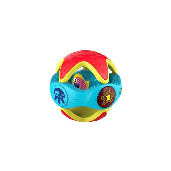Zabawkę wykonano z materiałów o różnym stopniu gładkości i twardości, co wpływa na rozwój zmysłu dotyku. Dziecko może naciskać kolorowe przyciski, chwytać kulę przez specjalne otwory lub całą dłonią, przekręcać rybkę obracającą się wewnątrz kuli. Te ćwiczenia na pewno rozwiną sprawność małej motoryki.