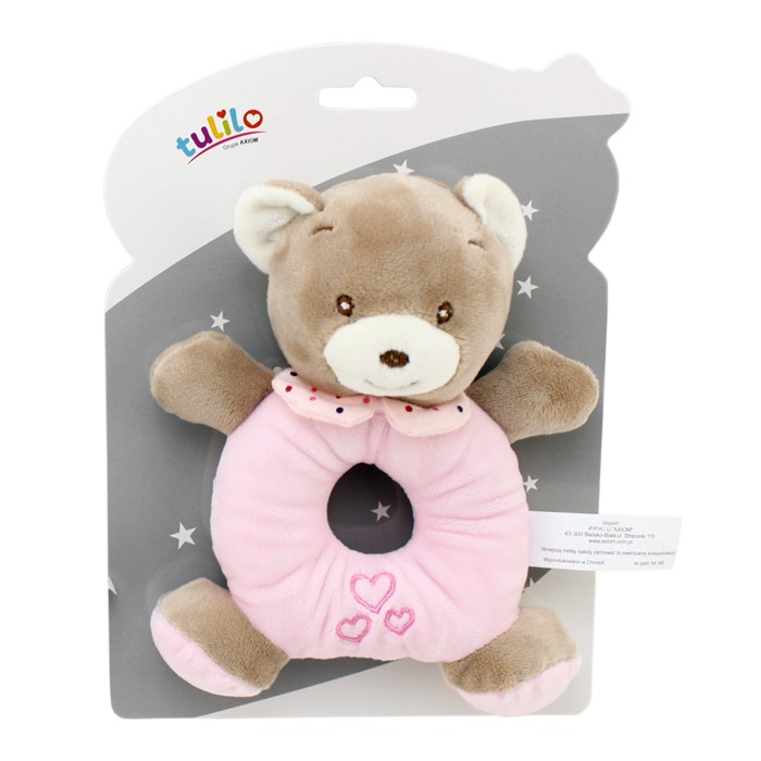 Grzechotka New Baby Miś różowy 16 cm
