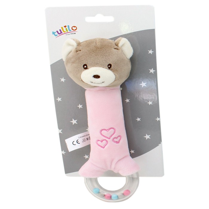 Grzechotka z dźwiękiem New Baby - Miś różowy, 21 cm