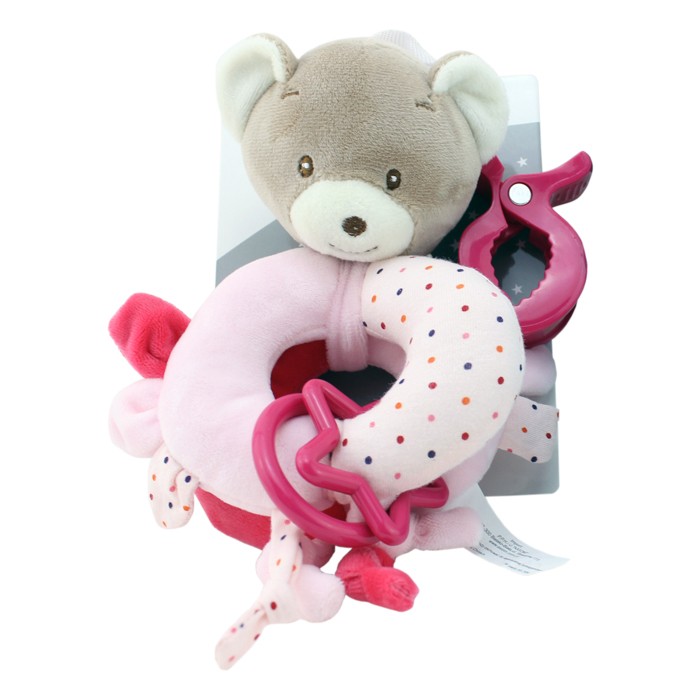 Grzechotka z dodatkami New Baby - Miś różowy, 16 cm