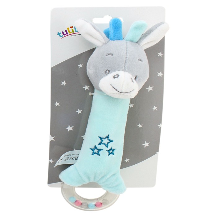 New Baby Osiołek grzechotka pluszowa z dźwiękiem to bardzo miła przytulanka w delikatnym miętowym kolorze. Zabawka ma uspokajający wpływ na małe dzieci i doskonale się sprawdza jako pomoc przy usypianiu. Osiołek wykonany jest z miłych, delikatnych materiałów i jest bezpieczny dla dzieci od pierwszych dni życia.