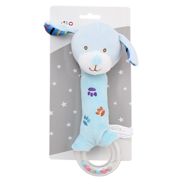 New Baby Piesek grzechotka pluszowa z dźwiękiem to bardzo miła przytulanka w delikatnym niebieskim kolorze. Zabawka ma uspokajający wpływ na małe dzieci i doskonale się sprawdza jako pomoc przy usypianiu. Piesek wykonany jest z miłych, delikatnych materiałów i jest bezpieczny dla dzieci od pierwszych dni życia.