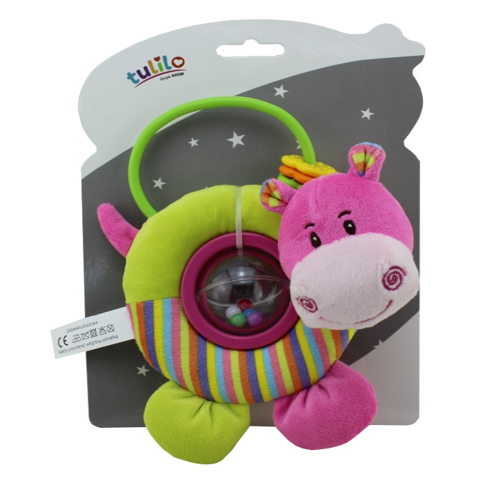 New Baby Hipopotam - grzechotka z dodatkami to bardzo miła przytulanka w żywych kolorach. Zabawka ma uspokajający wpływ na małe dzieci i doskonale się sprawdza jako pomoc przy usypianiu. Hipopotam wykonany jest z miłych, delikatnych materiałów i jest bezpieczna dla dzieci od pierwszych dni życia.