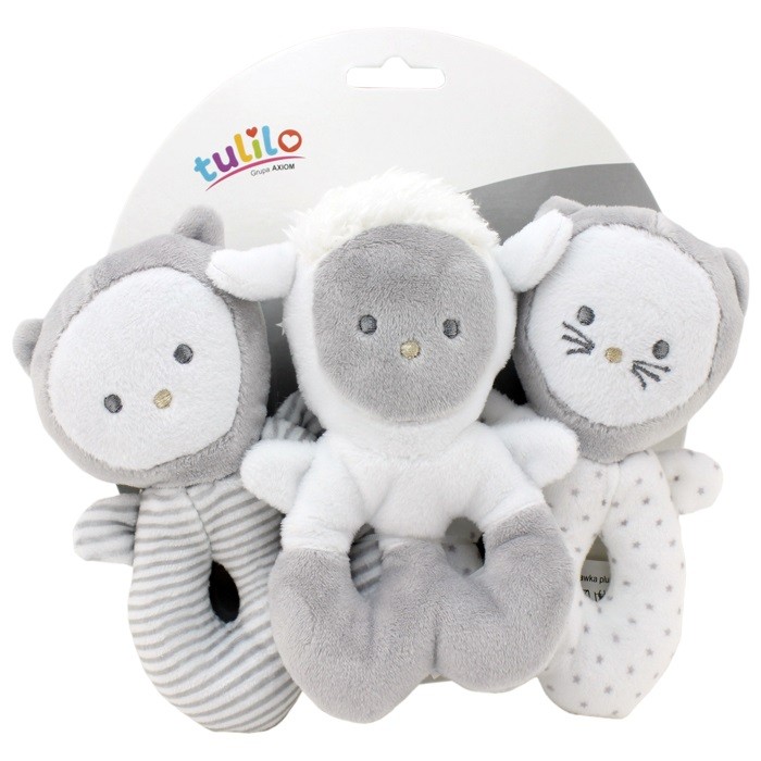 Grzechotki pluszowe - komplet 3 sztuki - 13 cm