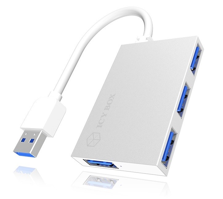 IB-Hub1401 to 4 portowy hub USB 3.0, który można łatwo podłączyć do portu USB 3.0 na swoim laptopie lub komputerze. Jest mały, a zintegrowany kabel USB 3.0 pozwala używać go bez konieczności pamiętania o dodatkowym kablu.