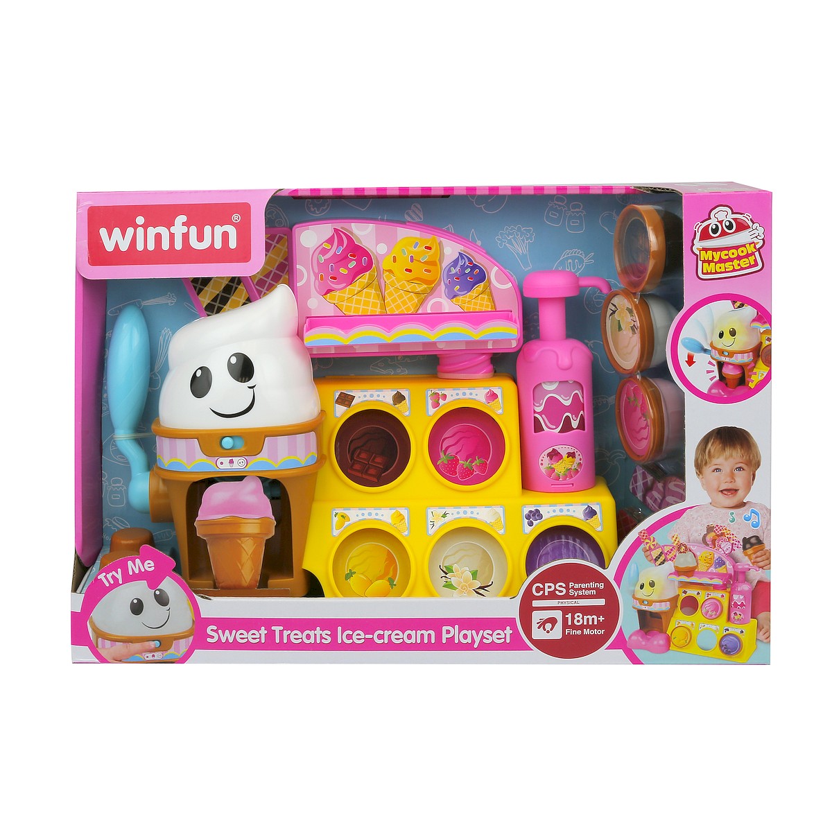 Mówiąca Lodziarnia to zabawka, którą pokocha Twoje dziecko. Zestaw do zabawy mówi po polsku. 2 tryby zabawy: tryb uczenia i tryb zabawy sprawia, że można się nim bawić na różne sposoby. Włóż rożek do urządzenia, wybierz ulubiony smak lodów, pociągnij za uchwyt a ujrzysz swoje lody.