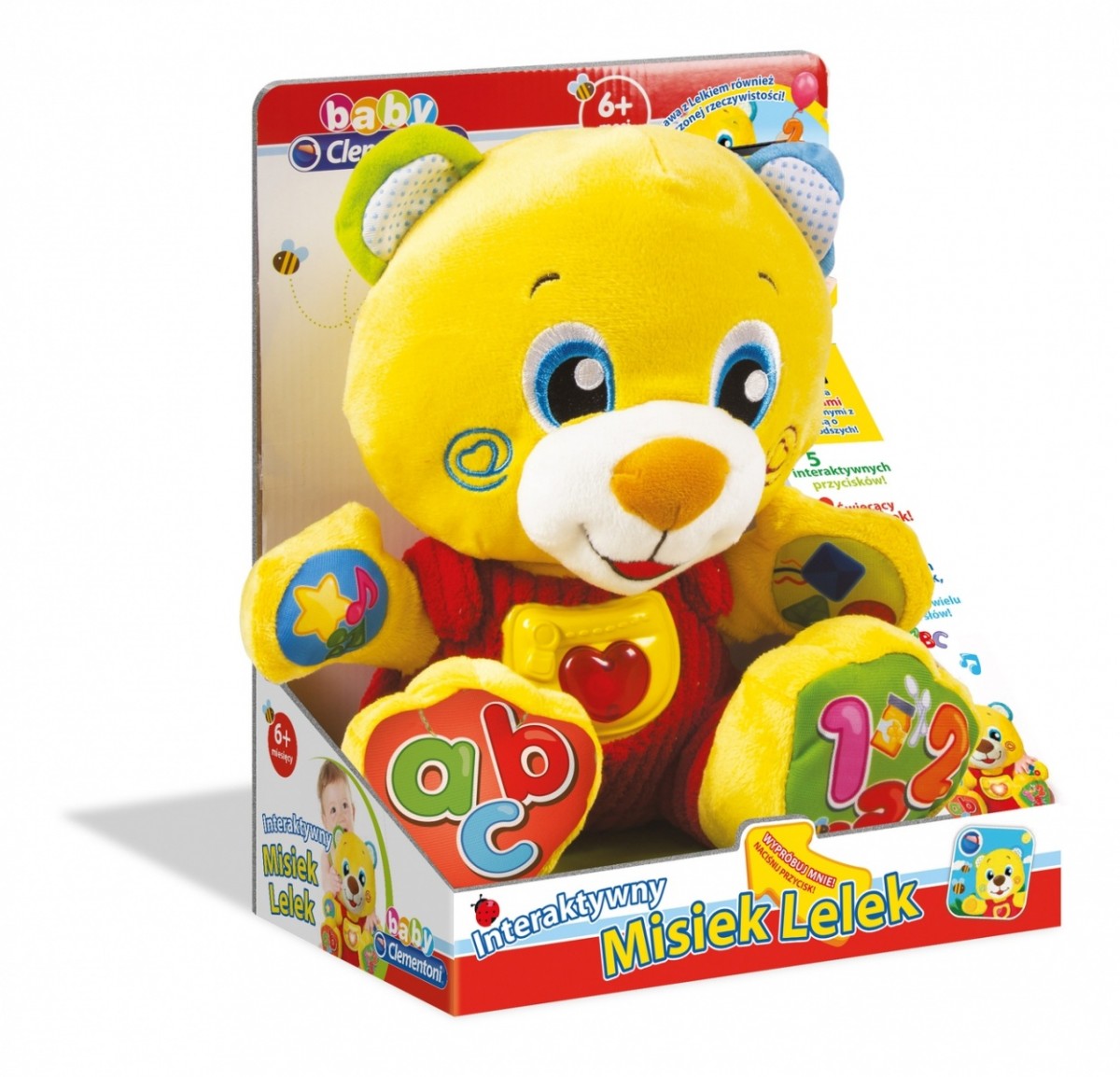 Misiek wprowadza dzieci w świat pierwszych liter, cyfr, kształtów i kolorów. Duży interaktywny przycisk na środku świeci się.