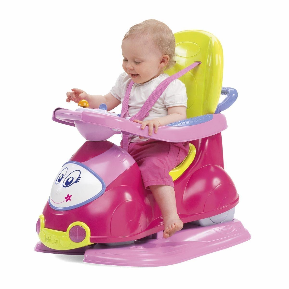 Rozwija zdolności motoryczne, sprawność ruchową, koordynację wzrokowo-ruchową i słuchowo-ruchową oraz zdolności muzyczne. Z myślą o najmłodszych do zabawki można zamontować stabilną bazę-bujak, a bezpieczeństwo malucha zapewni barierka ochronna i pasy bezpieczeństwa. Po zdjęciu bazy, rodzice mogą prowadzić jeździdełko trzymając za specjalną rączkę. Jeździdło jest też doskonałe dla maluszków stawiających pierwsze kroki. Zabawka ma zdejmowany podnóżek. Panel z dźwiękami i światełkami pozwala dziecku bawić się również po zdemontowaniu go z jeździdełka.