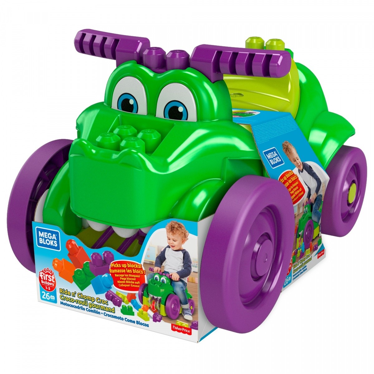 Ten uroczy krokodyl zapewnia zabawę 3 w 1! To równocześnie dziecięcy jeździk, zjadacz klocków i zestaw do budowania! Wesoły przyjaciel zawsze ma apetyt na zabawę i uwielbia klocki. Dzieci mogą dosiąść zabawnego krokodyla i ruszać przed siebie, by pozjadać wszystkie klocki na swojej drodze. Mogą też zbudować, co tylko chcą, dzięki 25 klockom dołączonym do zestawu. To świetny trening zręczności i kreatywności dla malucha.