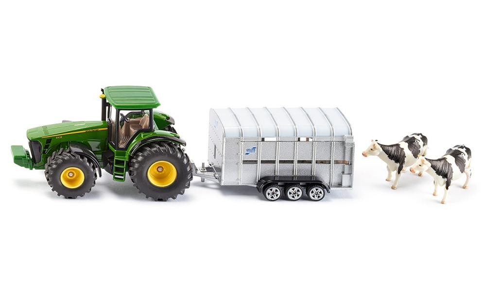 Tym razem model ciągnika marki John Deere 8430 w zestawie z przyczepą do przewozu zwierząt. By zabawy dzieci były bardziej realistyczne, do zestawu dołączono zwierzęta. Możliwość otwarcia dachu przyczepy.