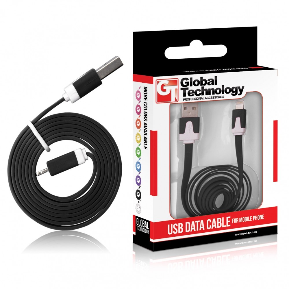 KABEL USB IPHONE 5 8PIN iOS7+ PŁASKI CZARNY