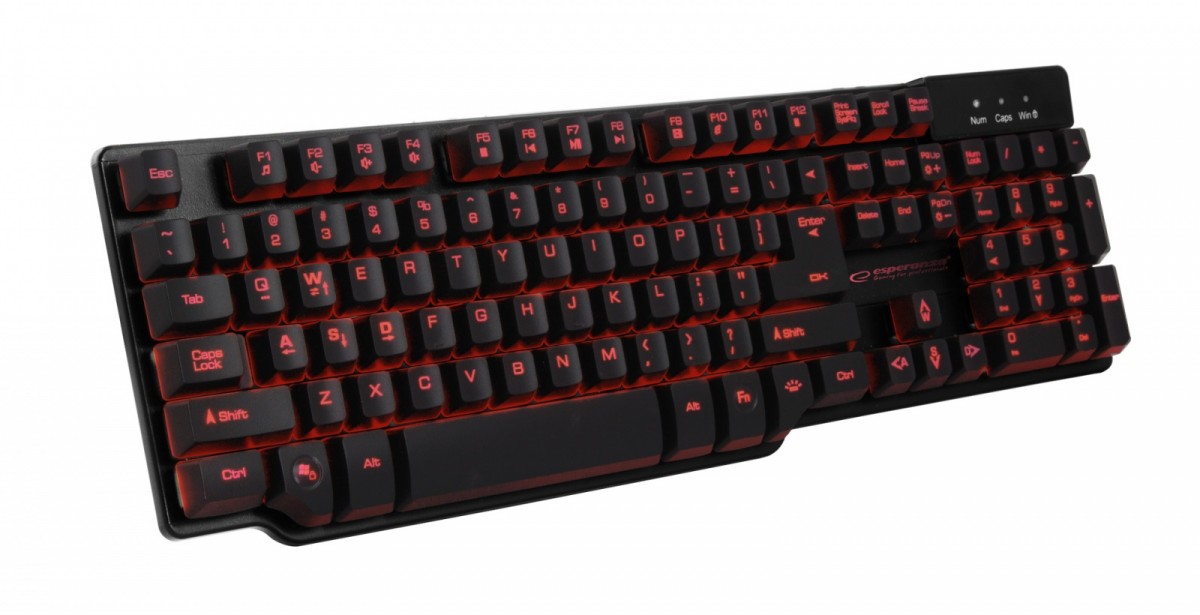 Podświetlana, wygodna, miła w dotyku, wysokiej jakości multimedialna, przewodowa klawiatura USB dla graczy. Klawisze posiadają mechanizm zbliżony do stosowanego w klawiaturach mechanicznych. Atrakcyjny i elegancki wygląd sprawia, że doskonale będzie komponowała się na biurku z innymi akcesoriami komputerowymi do gier. Ergonomiczne wyprofilowanie i duża elastyczność klawiszy zapobiega przeciążaniu nadgarstków podczas grania i pisania. Posiada 12 multimedialnych klawiszy funkcyjnych (uruchomienie odtwarzacza multimediów, zmniejszanie głośności, zwiększanie głośności, wyciszanie, zatrzymanie odtwarzania, poprzedni utwór, zatrzymanie/wznowienie odtwarzania, następny utwór, e-mail, przeglądarka internetowa, blokada klawiatury, kalkulator). Litery oraz symbole zostały nadrukowane w najnowszej technologii UV i są pokryte specjalną warstwą ochronną nadającą im wysoką odporność na ścieranie. Wykonana z wysokiej jakości materiałów odpornych na elektryzowanie się. Zabezpieczona przed generowaniem interferencji elektromagnetycznych. Klawiatury współpracuje zarówno z notebookami jak i komputerami stacjonarnymi.