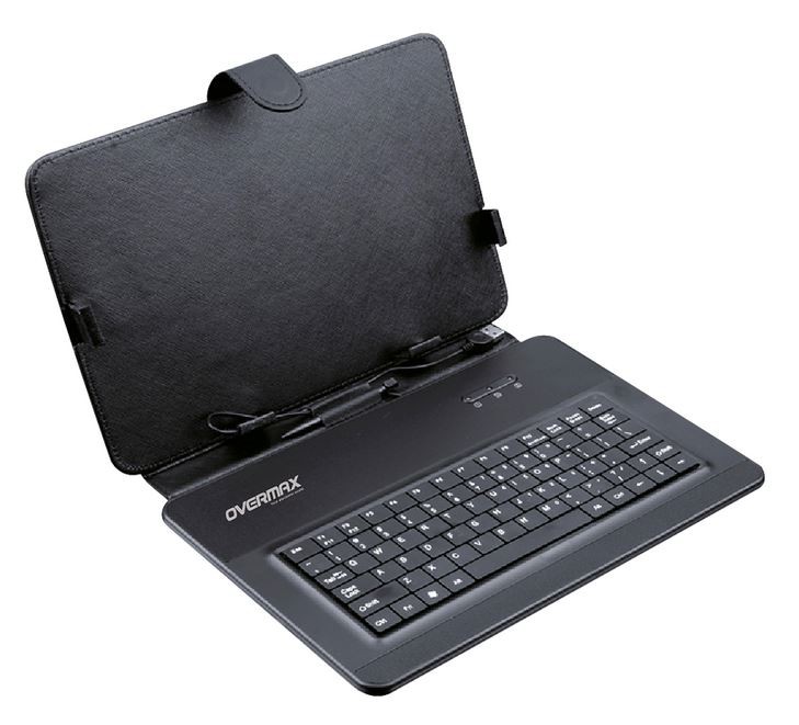 Etui posiada wbudowaną pełnofunkcjonalną klawiaturę typu QWERTY oraz kabel microUSB. Etui ma też nóżkę, dzięki której pełni funkcję stojaka pod tablet. Całość stoi stabilnie i pod odpowiednim kątem.
