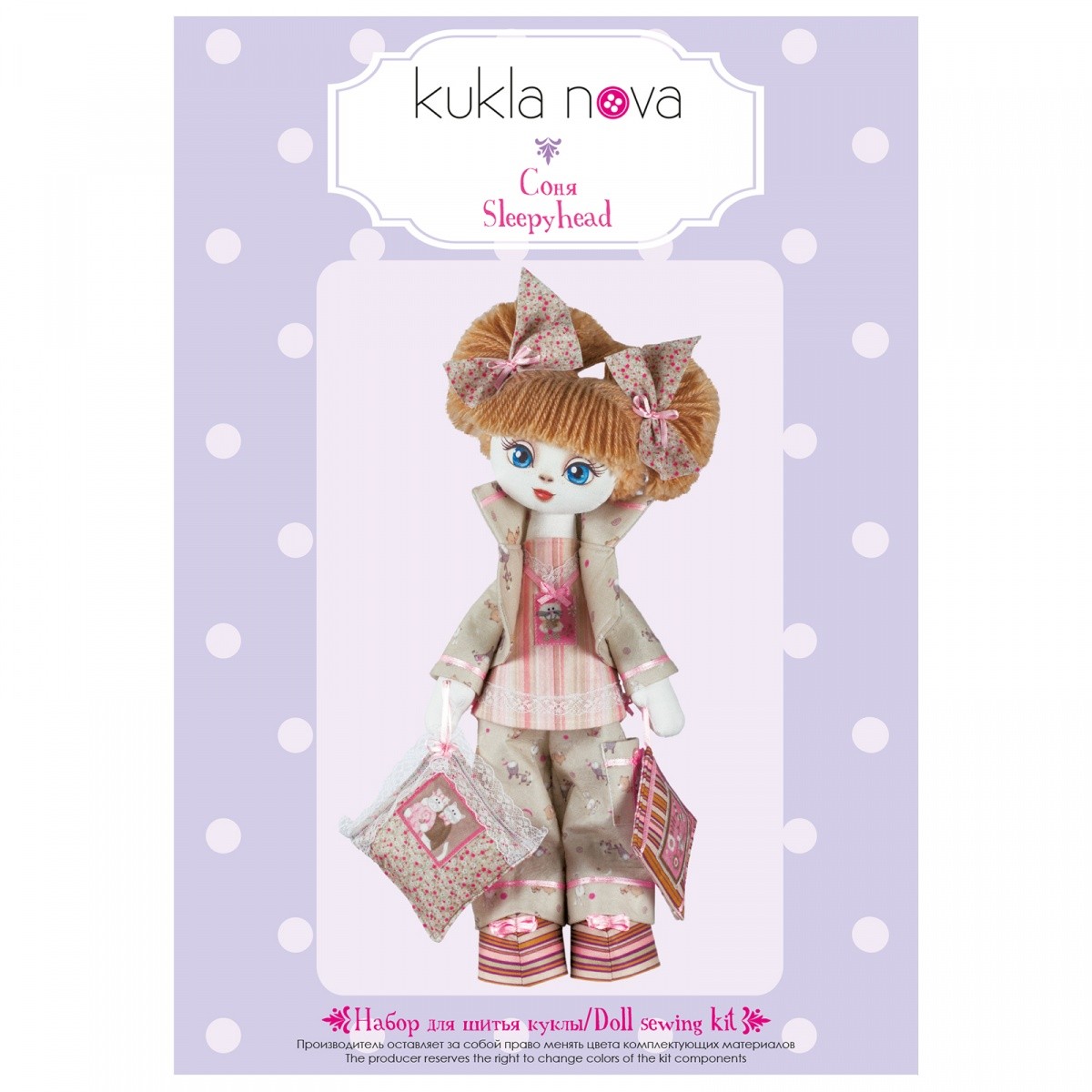 Zestaw zawiera wszystko, czego potrzebujesz do przygotowania lalki: tkaninę do uszycia ubrań, butów i akcesoriów, włóczkę do włosów, wypełniacz, wstążki i guziki. Dołączona jest również instrukcja w języku polski, angielskim i rosyjskim.
