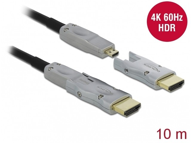 Kabel firmy Delock stosowany do podłączania urządzeń z interfejsem HDMI, takich jak monitory lub telewizory, do komputera PC lub laptopa. Ten aktywny kabel optyczny jest wyjątkowo cienki i może transmitować sygnały bez strat na dużych odległościach.