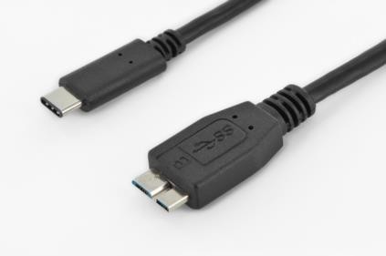 Kabel przyłączeniowy USB typu C, typ C do micro B, Wt/wt, 1,0 m, Super Speed, UL, czarny. Do podłączania zewnętrznych urządzeń końcowych USB (z gniazdem micro B, np. zewnętrznego dysku twardego) do hosta USB (np. tablet, notebook lub smartfon). Prędkość przesyłu danych do 5 Gbps (Super-Speed).