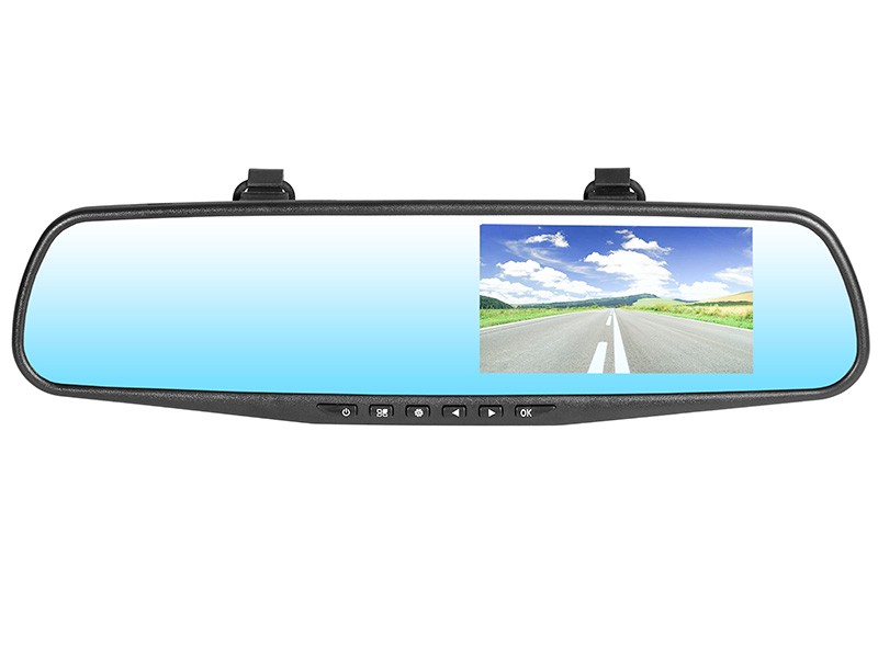 Kamera samochodowa TRACER MobiMirror FHD to wideorejestrator obsugujący dwie kamery. Przednia obsługuje maksymalnie rozdzielczość 1920*1280 pzy 25 klatkach na sekundę, zaś podgląd na tylną szybę na tylnej kamery jest możliwy w rozdzielczości 640*480 w 25 klatkach na sekundę. Przednia kamera nagrywa obraz o szerokości 170 stopni, natomiast tylna - 120 stopni. Urządzenie ma wbudowaną baterię, która podtrzymuje ustawienia w każdej nieprzyjemnej sytuacji drogowej. Dla ułatwienia i wygody użytkownika, zastosowano wyświetlacz TFT LCD 4.3".