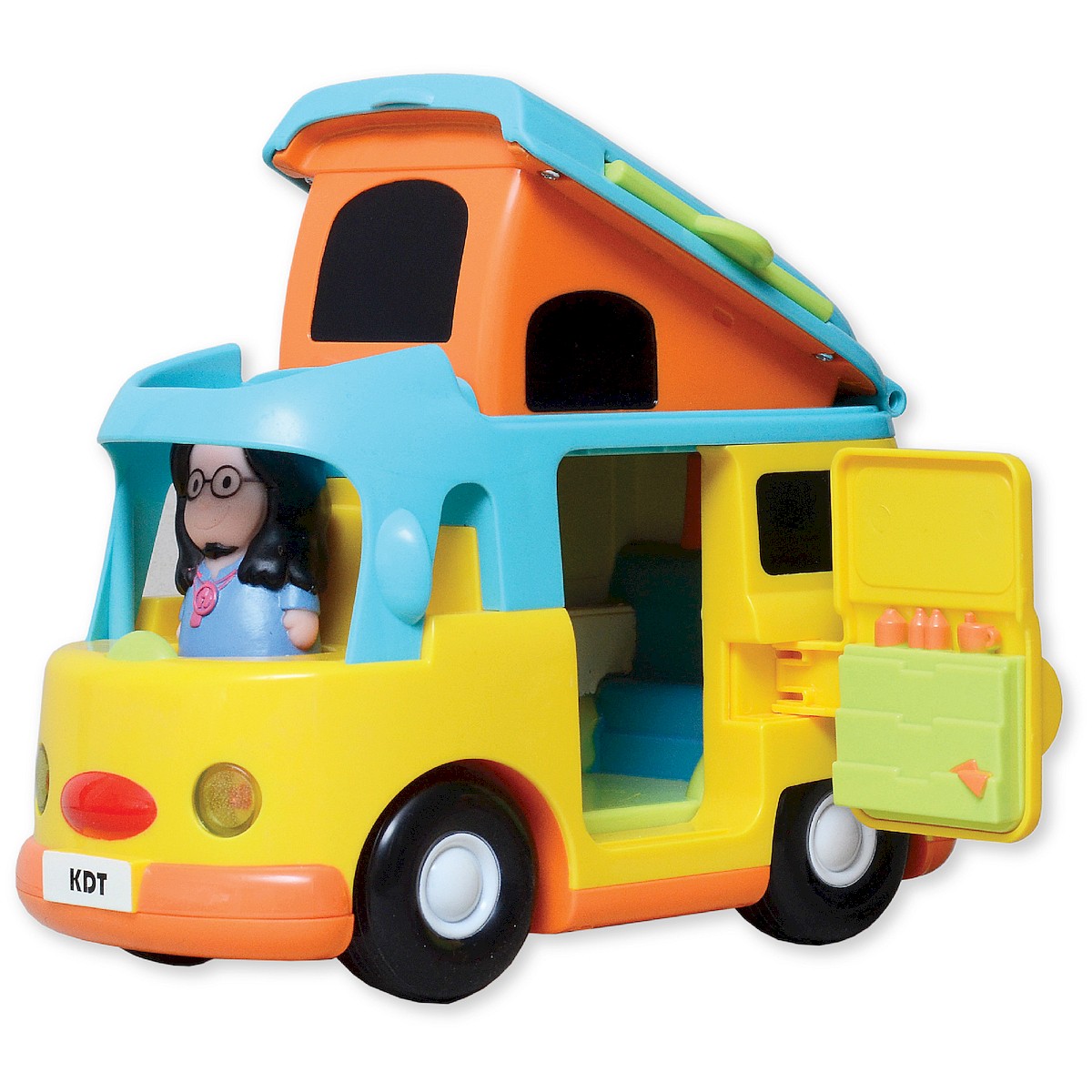 Auto Kamper Szalone Wakacje jest bezpieczną zabawką już dla rocznego dziecka. Może się nią bawić także starsze dziecko (zabawka rekomendowana do 5-go roku życia). Auto Kamper mówi po polsku frazy związane tematycznie z podróżą na wakacje. Auto ma podnoszony dach z wysuwanym baldachimem. Dach można odłączyć od kampera. Auto Kamper na wakacje zabiera 2 figurki ludzi i pieska. Do wnętrza kampera można dostać się z góry lub przez otwierane drzwi. Po naciśnięciu figurki siedzącej w kabinie Auto mówi.