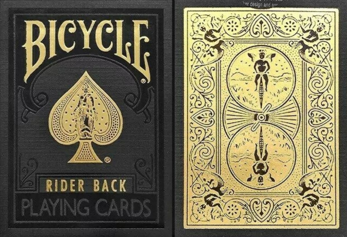 Bicycle Black & Gold to zdecydowanie najbardziej oczekiwana talia tego roku. Niezwykła interpretacja klasycznych kart Bicycle w tłoczonym opakowaniu ze złotej folii. Metaliczny atrament nadaje kartom obłędny design. W skład talii wchodzą 52 karty, 2 jokery, 1 karta Gaff i jedna reklamowa. Wyprodukowane w USA przez United States Playing Cards Co.