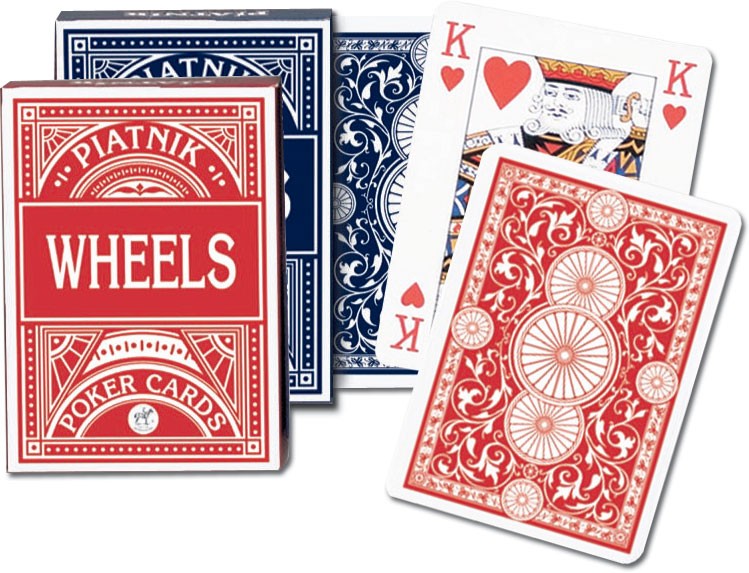 Klasyczne, wysokiej jakości karty do pokera o fakturowanej powierzchni. "Wheels" - najtańsze w swojej klasie. Talia 55 plastikowanych kart o pokerowym wymiarze 63 x 88 mm i gramaturze 310.