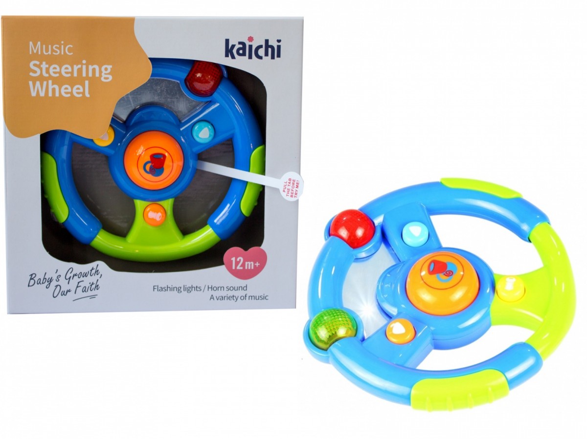 Na kierownicy znajdują się 4 przyciski. Przyciskając guzik z kluczykiem, po wciśnięciu usłyszymy odgłos odpalanego samochodu. Na środku kierownicy jest klakson, który trąbi, a także wyświetla na ekraniku kierownicy autko. Naciskając prawy lub lewy guzik uruchamiamy migacz i świecące lampki.