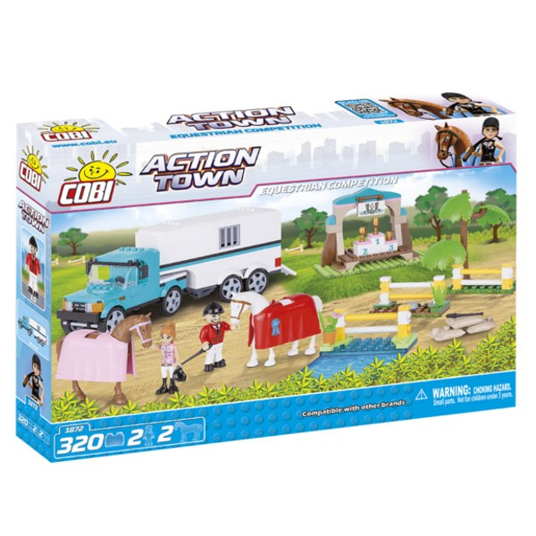 Do miasteczka zjeżdżają się wszyscy zawodnicy oraz zaproszeni goście. Tak jak w zeszłym roku faworytami są, piękny koń Biała Gwiazdeczka zwycięzca zeszłorocznych zawodów i koń czystej krwi arab Czekoladka. Ich dżokeje właśnie przygotowują konie do zawodów. Ustawiane są przeszkody z poprzeczek oraz worki z piaskiem. Na placu zawodów nie może zabraknąć rónież podium z pucharami. Samochód, którym transportowane są konie ma otwieraną tylną klapę i przednie drzwi. Model samochodu po złożeniu ma 24,5 cm długości oraz 9 cm szerokości.