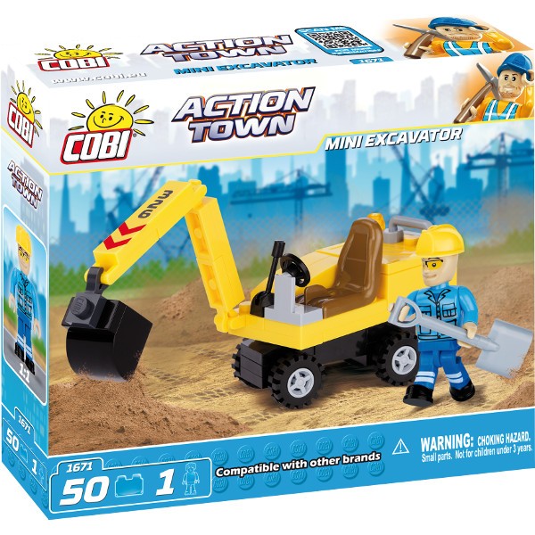 Tam gdzie pracę zakończyła duża koparka do zadań specjalnych, do akcji wkracza mini koparka. Zwrotna, szybka i mogąca dotrzeć w najmniejszy zakątek czeka na wskazanie miejsca budowy. Koparka obraca się wokół własnej osi bez użycia kół, ma ruchomy lemiesz w pozycji góra dół, ruchomą dźwignię oraz obracającą się kierownicę. Zestaw zawiera 50 elementów w tym 1 figurkę.