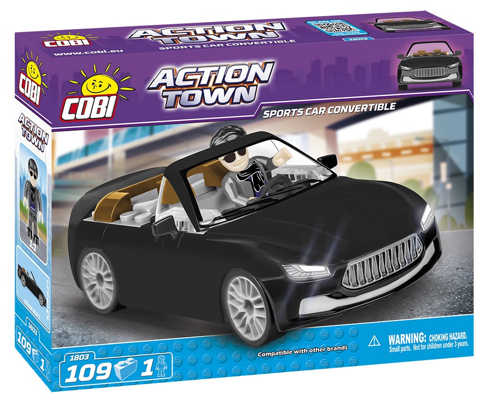 Action Town to klockowa metropolia, w której oprócz pojazdów policji, straży pożarnej czy innych służb, można znaleźć także ekskluzywne samochody sportowe. Luksusowa, czarna, sportowa Cobra jest autem, z którym mało które może się równać.