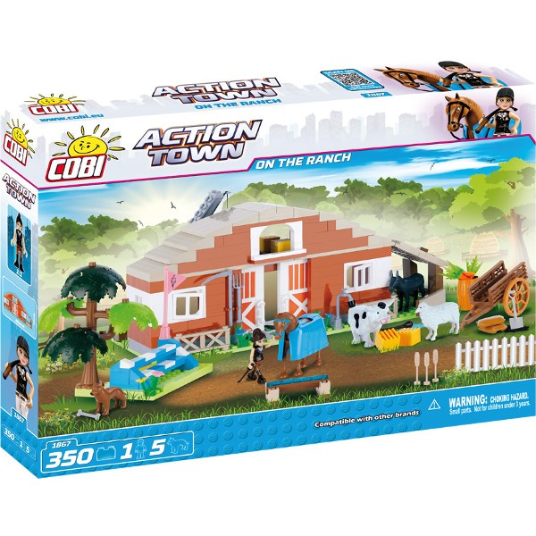 W stajni musisz zrobić miejsce zwierząt oraz przygotować boksy. Stajnia ma otwierane drzwi oraz otwieraną zagrodę dla osiołka. Po pracy w stajni możesz zorganizować zawody konne. Zestaw składa się z 350 el. w tym figurka dziewczynki i 5 figurek zwierząt: owca, koń, krowa, pies i osiołek.