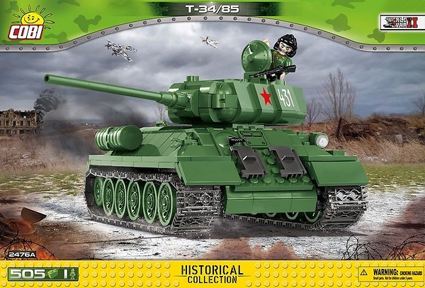Miniaturowy pojazd z klocków konstrukcyjnych COBI posiada liczne ruchome części takie jak otwierane włazy, ruchomy karabin maszynowy, czy obracające się koła i gąsienice. Włazy załogi i klapy serwisowe można otwierać, by m.in. zajrzeć do silnika pojazdu. Obrotowa wieża i ruchome działo to dodatkowe atuty tego modelu. Zaletą jest także bardzo solidna konstrukcja, która w wyjątkowy sposób odzwierciedla oryginalne kształty swego historycznego pierwowzoru. Model czołgu T-34/85 znakomicie sprawdzi się jako zabawka, ale także wyjątkowy element każdej kolekcji fana militariówi broni pancernej. W zestawie jest dostępna figurka radzieckiego dowódcy czołgu uzbrojonego w pistolet maszynowy PPSH. Pojazd jest odświeżoną i poprawioną wersją modelu zawierającą nowe kształty klocków i rozwiązania konstrukcyjne (edycja grudzień 2018).