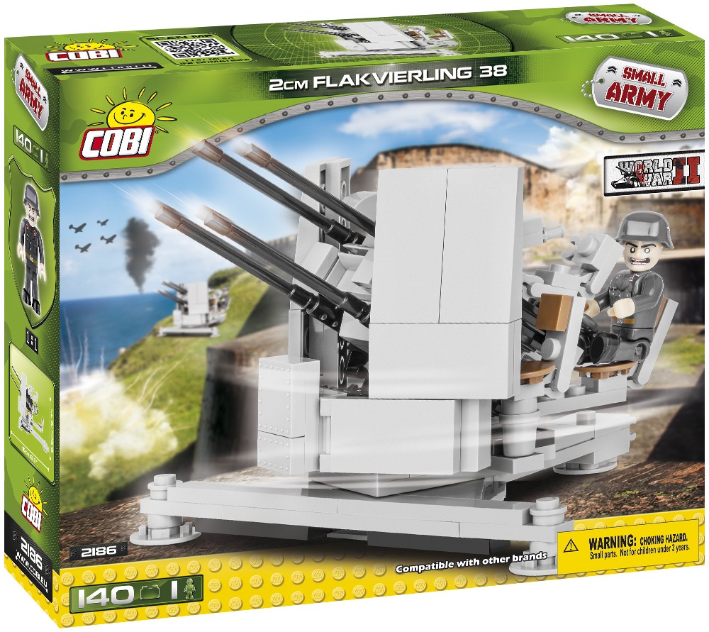 Zestaw zawiera 140 klocków i jedną figurkę żołnierza.