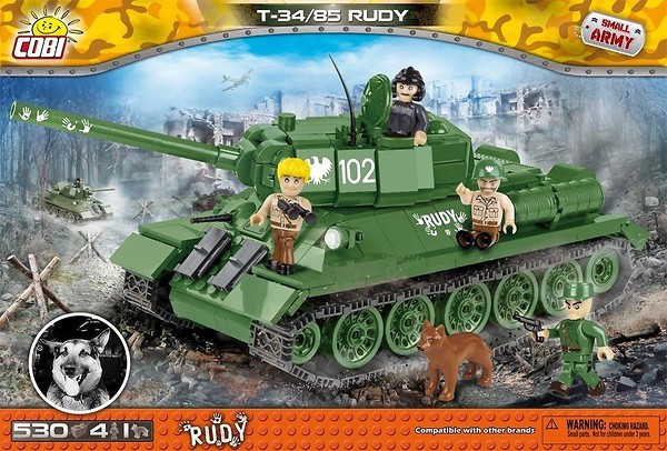 Czołg klasycznej konstrukcji, wykonany z walcowanych płyt pancernych. Wnętrze pojazdu podzielone było na trzy przedziały: kierowania, bojowy i napędowy. Od roku 1949 były one zasadniczym typem czołgów dywizji pancernych i zmechanizowanych w Polsce. W 1951 roku Polska wykupiła licencję na jego produkcję. W zestawie znajdziesz figurki bohaterów serialu: Gustlika, Wichury, Grigorija i Janka. Nie może zabraknąć również słynnego psa Szarika.