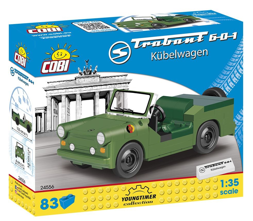 Model w skali 1:35 złożony w 100% z klocków COBI wiernie oddaje bryłę nadwozia oryginalnego Trabanta 1.1. Budowa z klocków konstrukcyjnych pozwala na drobne modyfikacje i przeróbki. Model znakomicie nadaje się na półkę każdego fana motoryzacji i kolekcjonera jak i do zabawy.