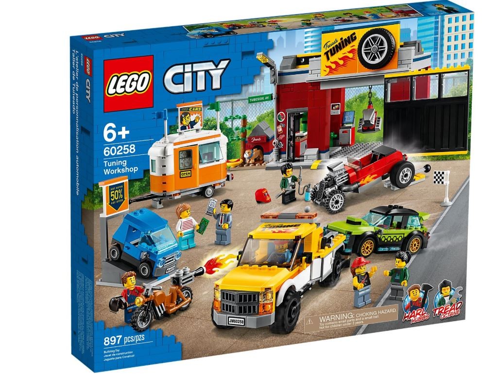 - Zestaw LEGO City Warsztat tuningowy (60258) będzie idealnym prezentem dla miłośników samochodów, ponieważ zawiera kilka modeli, takich jak warsztat i szereg niezwykłych pojazdów, oraz ciekawe postacie zachęcające do pomysłowej, samodzielnej zabawy.