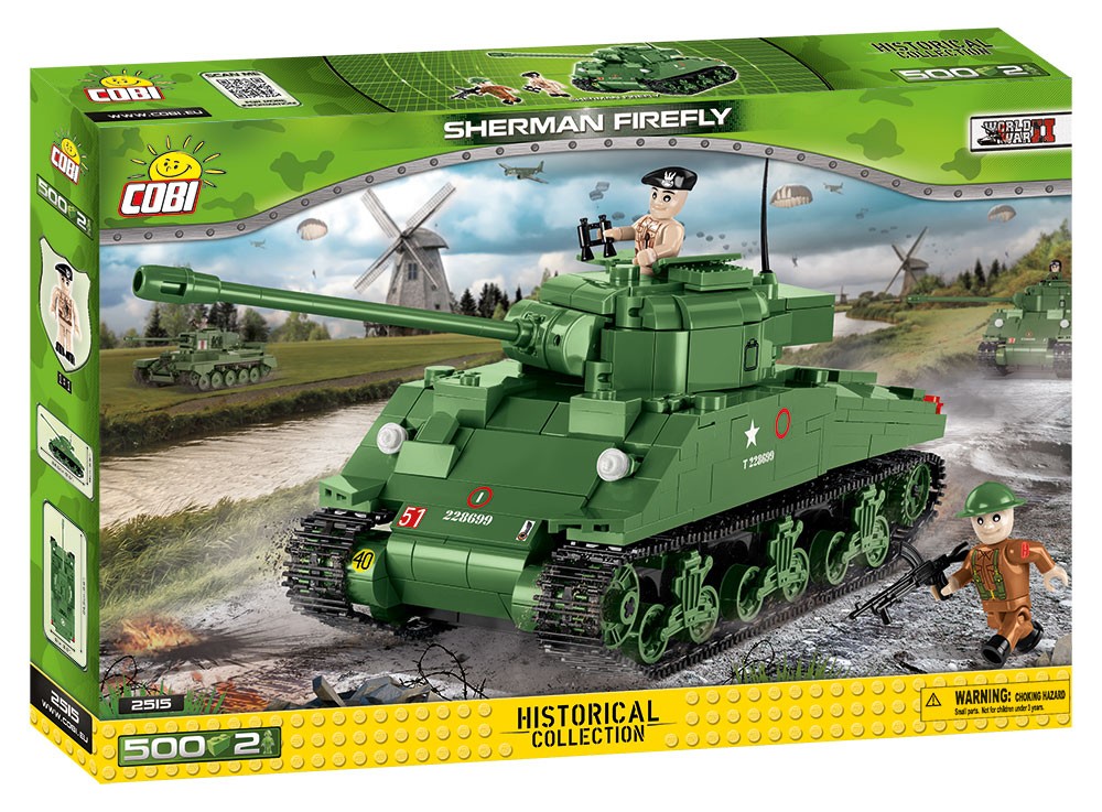 Model czołgu Sherman Firefly z klocków konstrukcyjnych COBI został zaprojektowany z ogromną dbałością o detale i wierne odwzorowanie rzeczywistej konstrukcji. Posiada trwałe nadruki odpowiadające historycznym oznaczeniom używanym przez 1. Dywizję Pancerną gen. Maczka. Pojazd z pewnością zachwyci wszystkich kolekcjonerów oraz miłośników broni pancernej, militariów i historii. Dzięki ruchomym elementom takim jak: otwierane włazy, koła i gąsienice, wieża, którą można obracać oraz lufa, którą można podnosić i opuszczać, czołg sprawdzi się jako znakomita zabawka dla najmłodszych. W zestawie dostępne są również dwie figurki: polski dowódca czołgu z lornetką i żołnierz piechoty w brytyjskim mundurze z polskimi oznaczeniami, uzbrojony w karabin maszynowy Bren. Dołączona została również karta ze statystykami pojazdu przeznaczona do Historycznej Gry Bitewnej. Klocki COBI są w pełni kompatybilne z innymi markami klocków konstrukcyjnych.