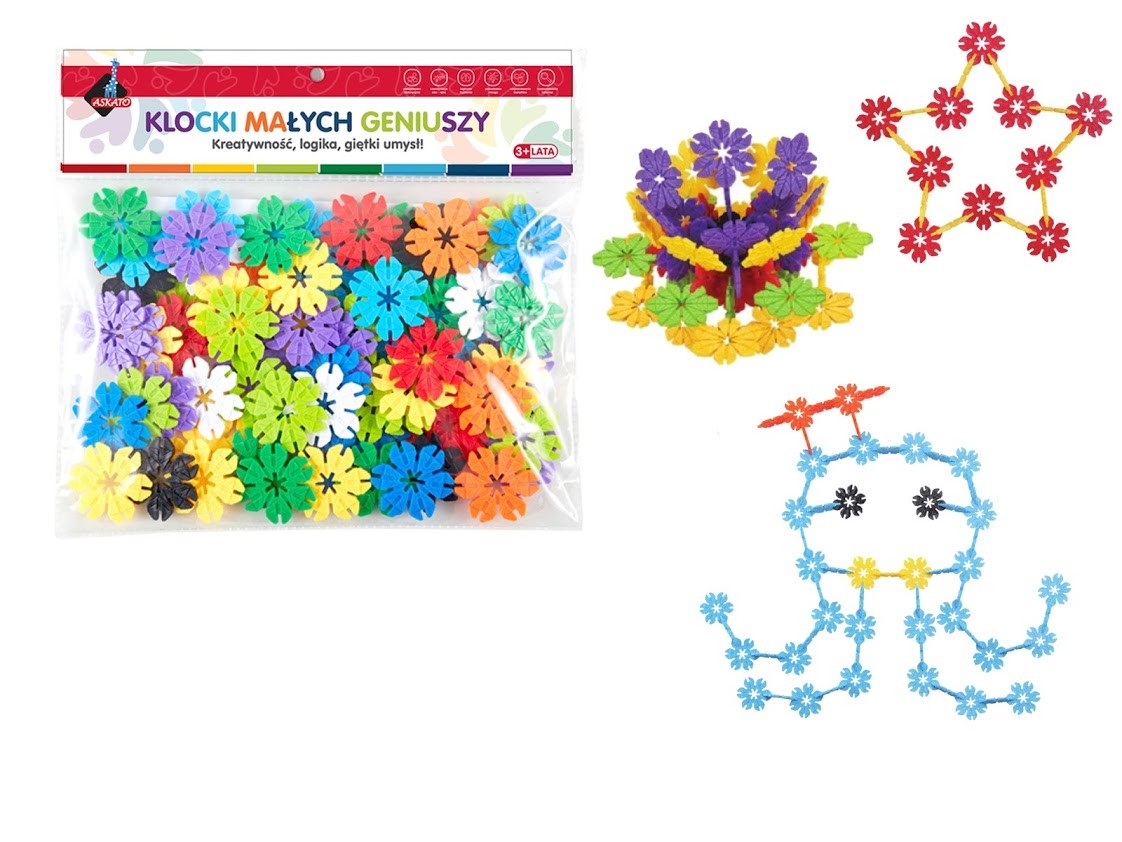 Strona główna Klocki konstrukcyjne Klocki Kwiatki 80 elementów Cena Netto: 9,49 zł. error_outline Produkt chwilowo niedostępny. Opis Edukacyjne klocki - kwiatki 80 elementów w 10 kolorach pozwala stworzyć fantastyczne figury, zaczynając od tych prostych, takich jak gwiazdka czy parasol, poprzez nieco trudniejszą ośmiornicę lub samolot.