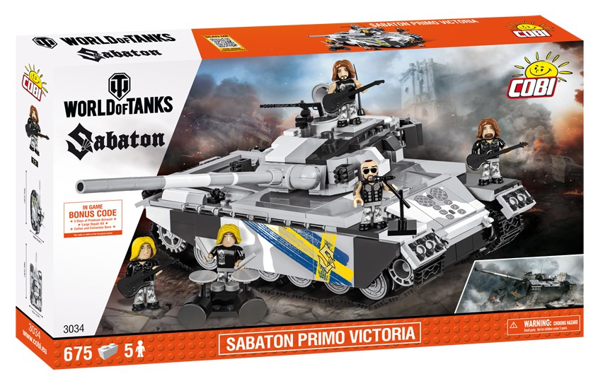 Model stworzony przez firmę COBI został opracowany z dbałością o najdrobniejsze detale. Wszystkie grafiki na nadwoziu to estetyczne i bardzo trwałe nadruki. Pojazd posiada liczne ruchome elementy takie jak: obrotową wieżę i ruchomą lufę, ruchomy ciężki karabin maszynowy, otwierany właz i ruchome gąsienice. W zestawie dostępny jest także dodatkowy, specjalny arkusz z naklejkami zawierający ikony i napisy znane z gry wideo World of Tanks. Załogę czołgu stanowią figurki przedstawiające wszystkich pięciu członków zespołu Sabaton uzbrojone w swoje instrumenty: gitary, mikrofon ze statywem oraz perkusję. W pudełku znajdziecie także kody do gry wideo z 3 dniowym kontem premium i dodatkami: Large Repair Kit oraz Coffee and Cinnamon Buns.