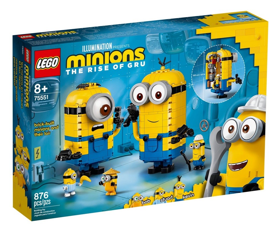 Zestaw LEGO 75551 sprawi, że mali fani Minionków będą skakać z radości. Po pierwsze, mogą zbudować z klocków niezwykłe figurki Kevina i Stuarta. Do tego po obróceniu każdy z modeli ukaże pokój pełen akcesoriów, takich jak narzędzia, kaski i broń, a także figurki do zabawy w odtwarzanie ról. Dzieciaki mogą budować dwie figurki Minionków jednocześnie, a potem przerobić Kevina na Boba.
