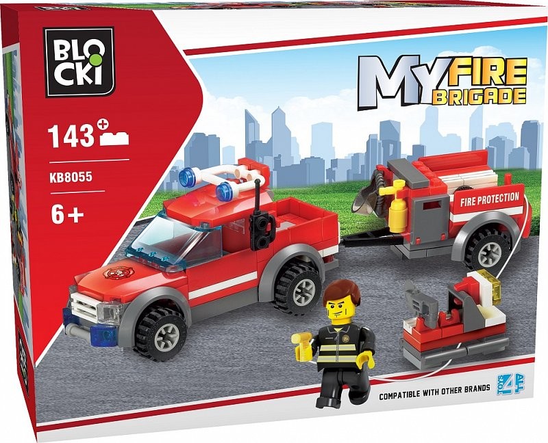 Klocki MyFireBrigade 143 elementy - Auto z przyczepą