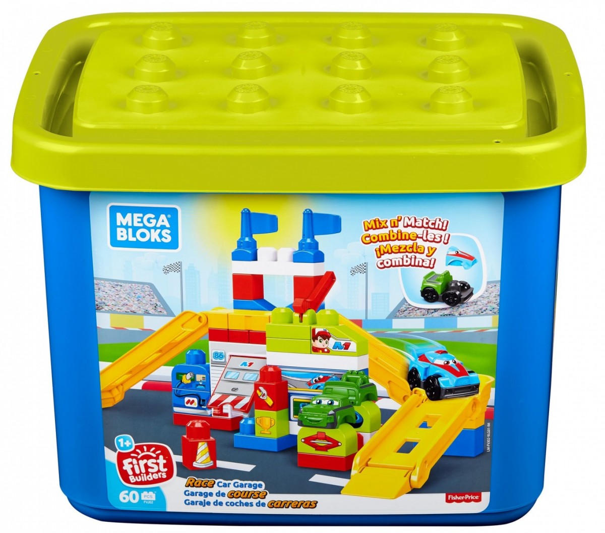 Twój mały rajdowiec przygotuje w nim dołączony pojazd do ekscytującego wyścigu! W pojemniku znajdziesz duże klocki i elementy toru, z których stworzysz warsztat i rajdową trasę.